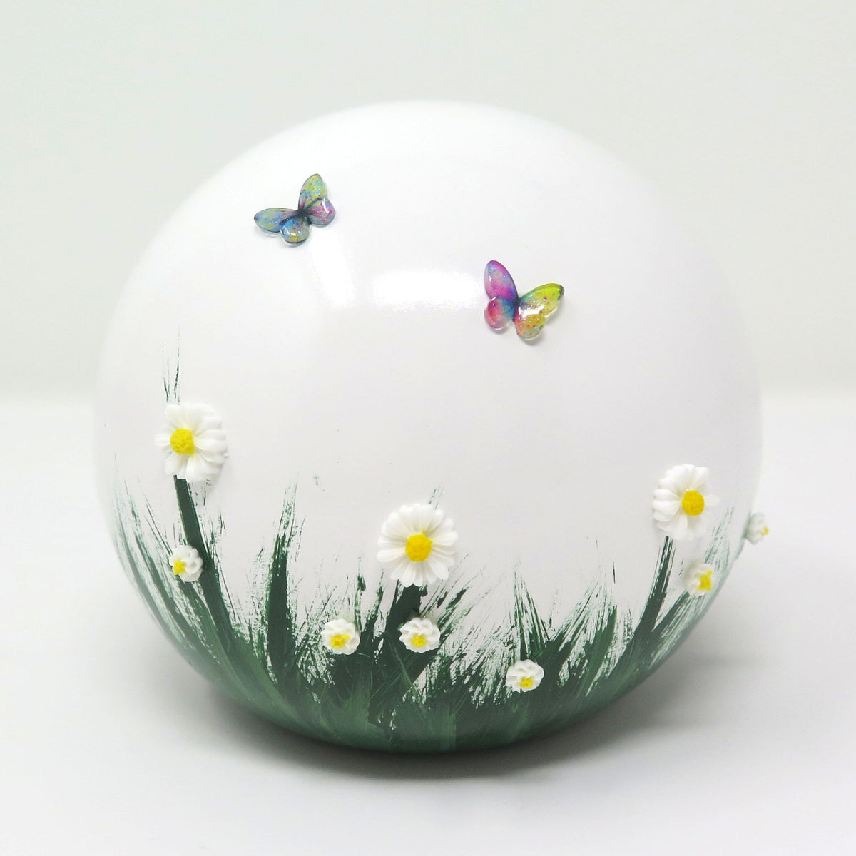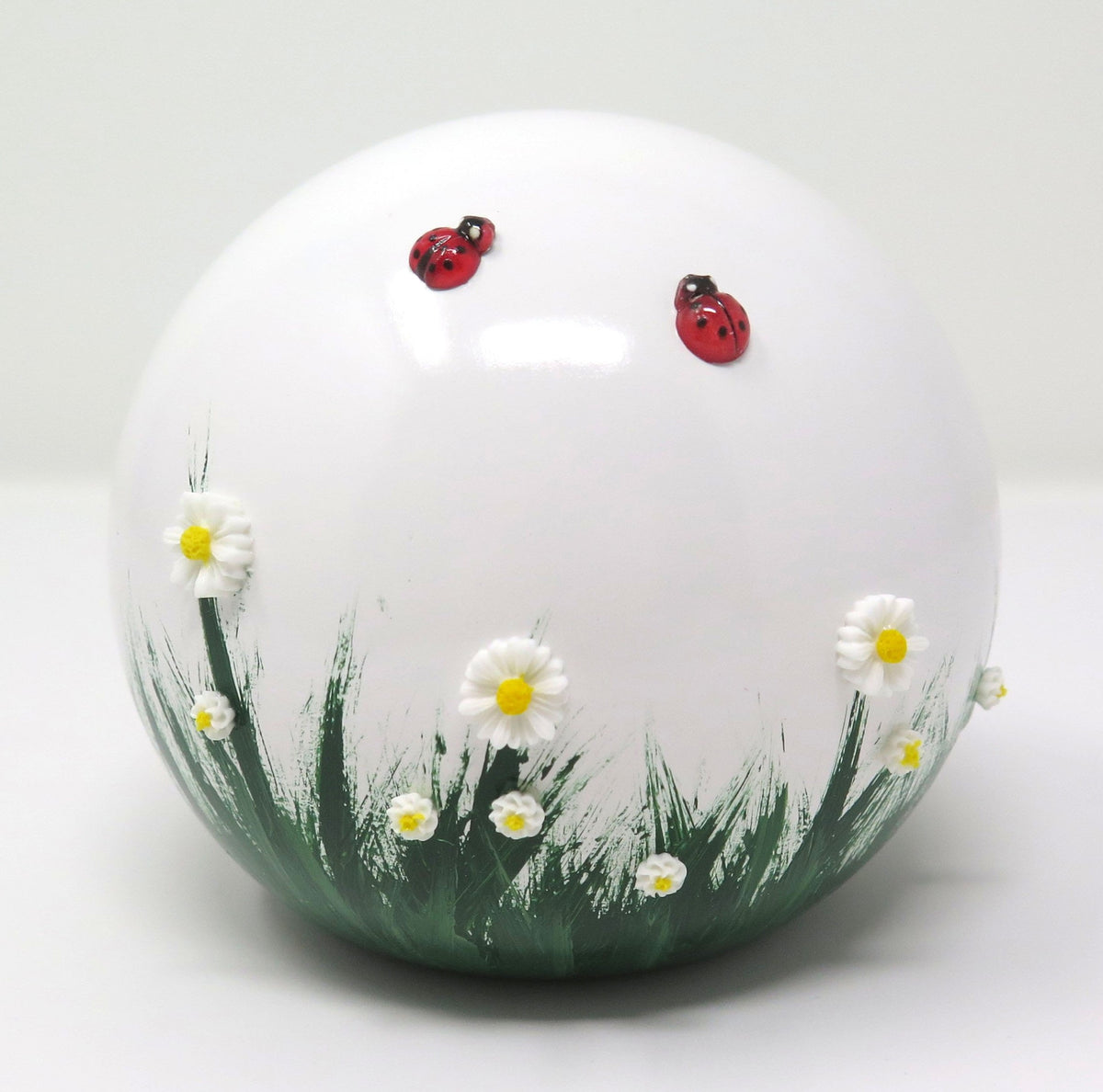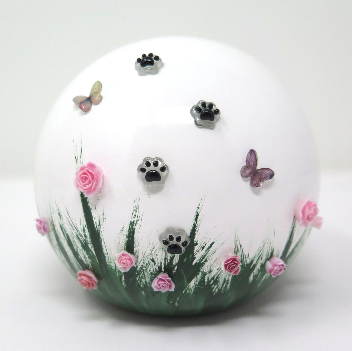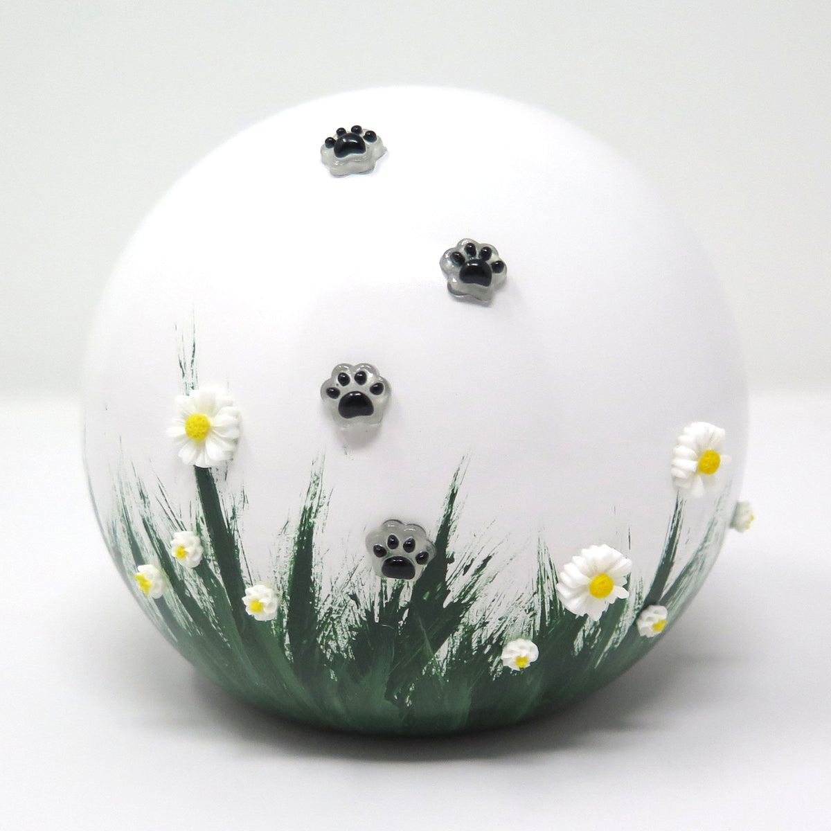 Kugelurne aus handgefertigter Keramik in unzähligen Größen und Motiven, auch als Kleintierurne geeignet.
