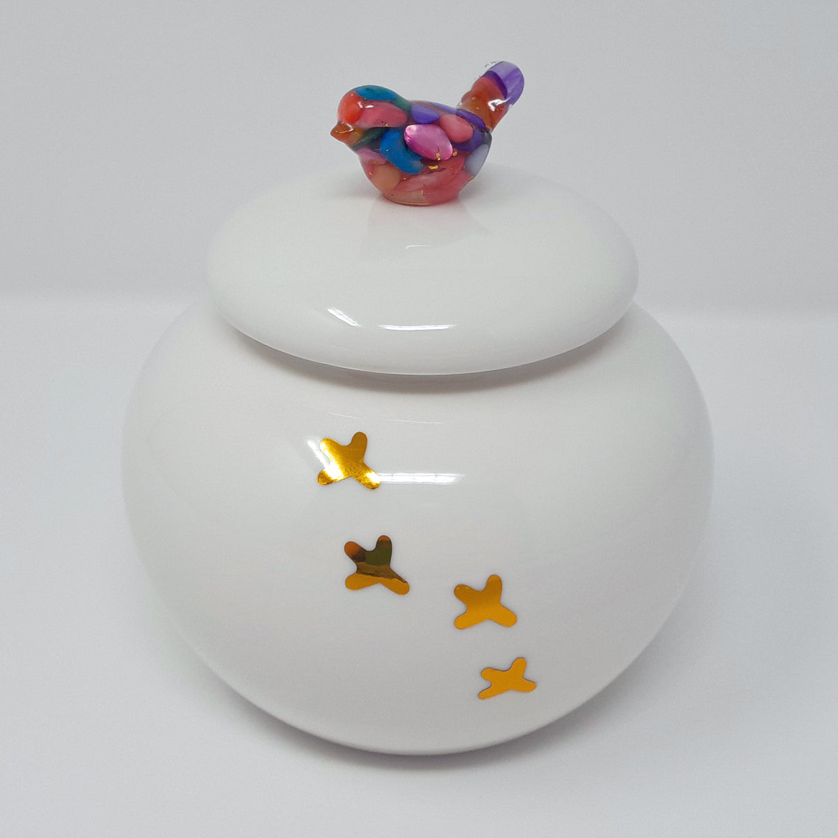 Liebevoll gestaltete Hamsterurnen, Schildkrötenurnen und Vogelurnen in vielen Farben.